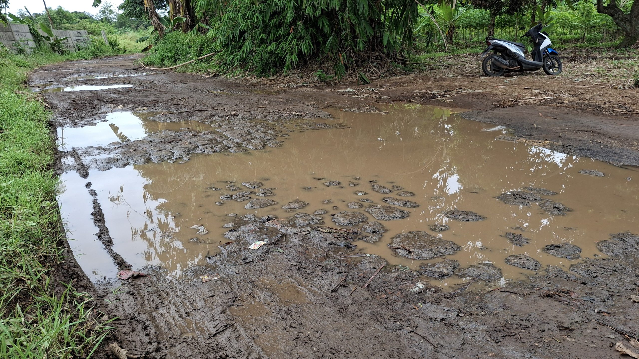 BEKASI, Mediakarya – Jalan menuju Kantor Desa Cibening, Kecamatan Setu, Kabupaten Bekasi rusak parah dan berlubang. Jalan itu merupakan akses vital yang digunai pengendara untuk berangkat kerja ataupun sekolah.