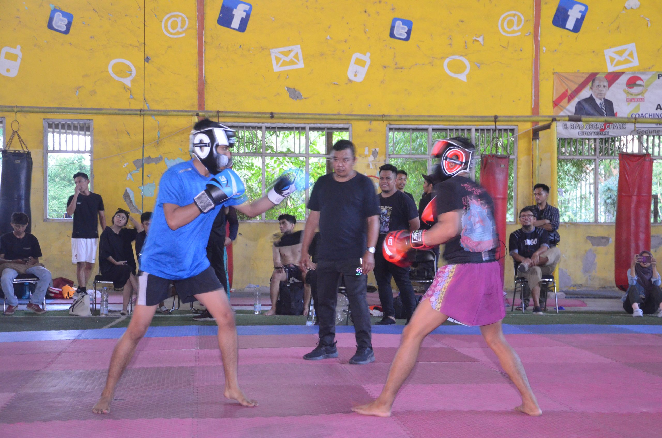 KOTA BEKASI, Mediakarya – Word MMA Federation (WMMAF-INA) Indonesia menggelar Sparring Day dengan ruleset Striking, MMA dan Grappling Absolute yang diselenggarakan di Camp Dragon, Jl. Ciremai Raya, kelurahan Kayuringin Jaya, Bekasi Selatan pada Minggu (17/12/23).