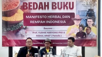 PURWOKERTO, Mediakarya – Nusantara Centre bersama indiebanyumas sukses menggelar bedah buku “Manifesto Rempah dan Herbal…
