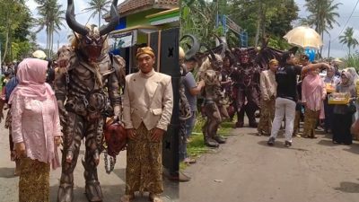 Viral! Rombongan Pengantin Ini Diarak Pakai Kostum Monster, Netizen: Nikahan Gak Jadi Sakral Malah Horor