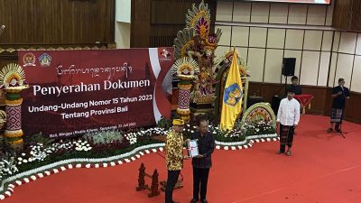 DENPASAR, Mediakarya – Gubernur Bali Wayan Koster menerima dokumen Undang-undang Nomor 15 Tahun 2023 Tentang Provinsi…